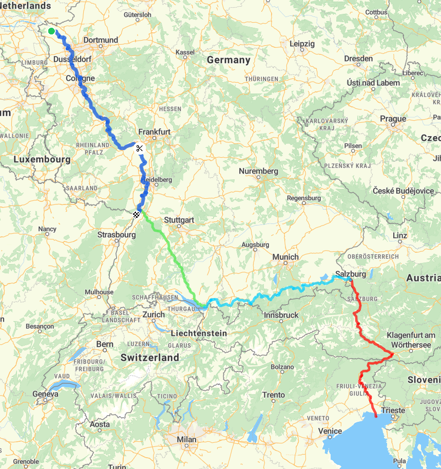 Na lang en kort beraad is het duidelijk, het waarnaartoe en wanneer. Ik zal samen met Frans vanuit Gennep vertrekken en daar ergens in de buurt de Rijnroute oppakken. Eurovelo 15 Rhineroute deze rijden we niet helemaal uit maar bij Karlsruhe ongeveer slaan we af naar Lindau en daar zullen we switchen naar de Beierse Alpen route. beierse-alpen route Deze route is een dikke 400km met ruim 5000hm en gaat over de Alpen en deze zullen we volgen naar Salzburg alwaar we weer switchen van route, namelijk de Alpe Adria radweg Alpe Adria radweg naar Grado Italie deze route is 421 km met 3927hm. Vanuit daar zullen we freewheelen terug naar München waar we de ICE trein zullen pakken naar NL. Onderweg word er gekampeerd en, gelogeerd en gehotelleerd En wanneer is de start van al dat plezier hoor ik je denken. Nou die is als het goed is in de week van 12 Mei 2026. We denken hier zo’n dikke 2,5 weken mee bezig te zijn maar dat is niet in beton gegoten.De tocht is ongeveer totaal geloof ik 1600 ish km. Hopelijk zijn de weergoden ons gunstig gezind want dat weet je maar nooit half mei. Dus tot die tijd zal ik er nog even aan moeten trekken mede omdat ik de laatste tijd niet echt veel heb gefietst. We zullen onderweg weer veel vastleggen, hetzij film of foto’s en ik zal proberen er hier (of op Bike010) dagelijks een post aan te spenderen. Tot die tijd is het nog even afwachten en thee drinken. Maar feit is dat we er heel veel zin in hebben ! Zo, nu verder met uitzoeken wat ik teveel ga meenemen.